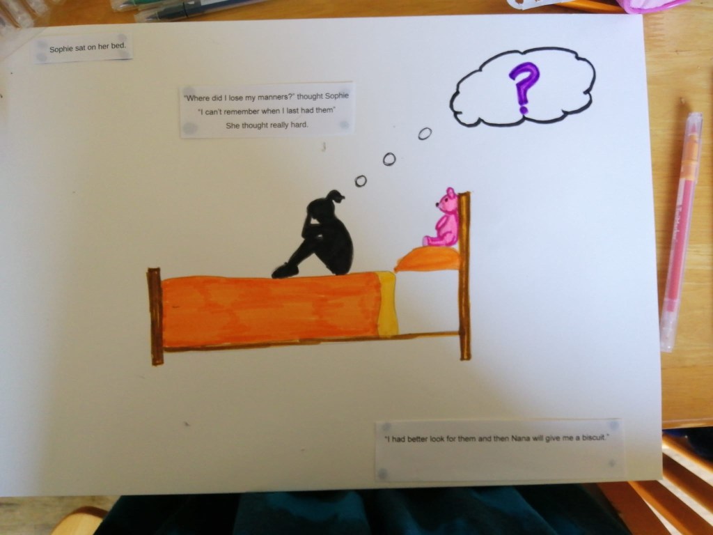 Nana is going to look after Sophie and her brother Teddy while mummy is at work. Sophie is cross, she is rude to Nana and mean to Teddy. Sophie has lost her manners. She has to find them or she won’t be allowed a treat, but where are they?